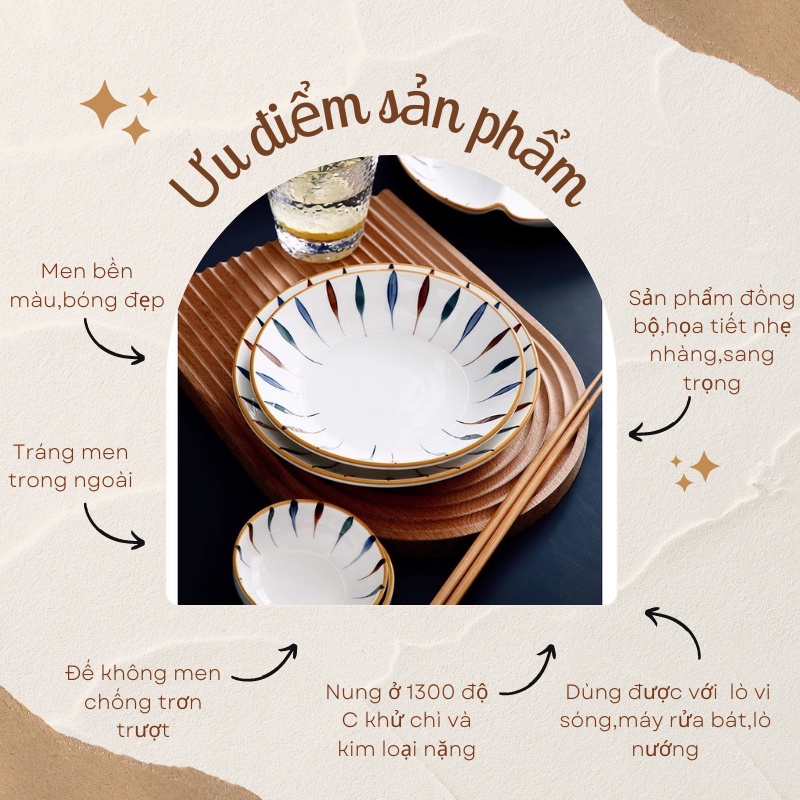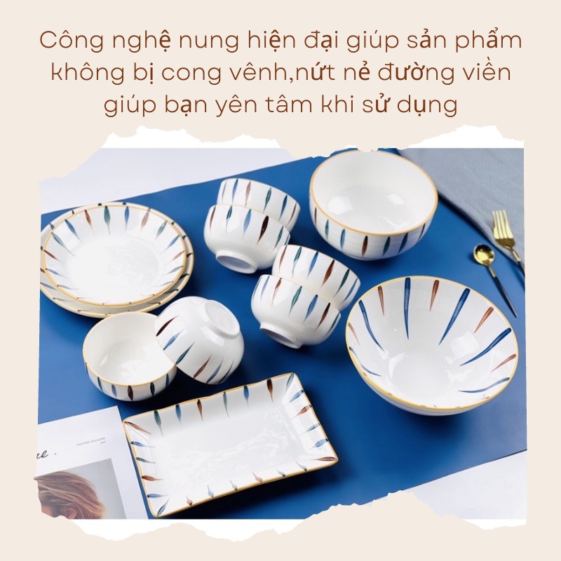 THÔNG TIN SẢN PHẨM:- Bộ bát đĩa Kẻ ,chén dĩa sứ,bát ăn cơm decor cao cấp phong cách Nhật Bản