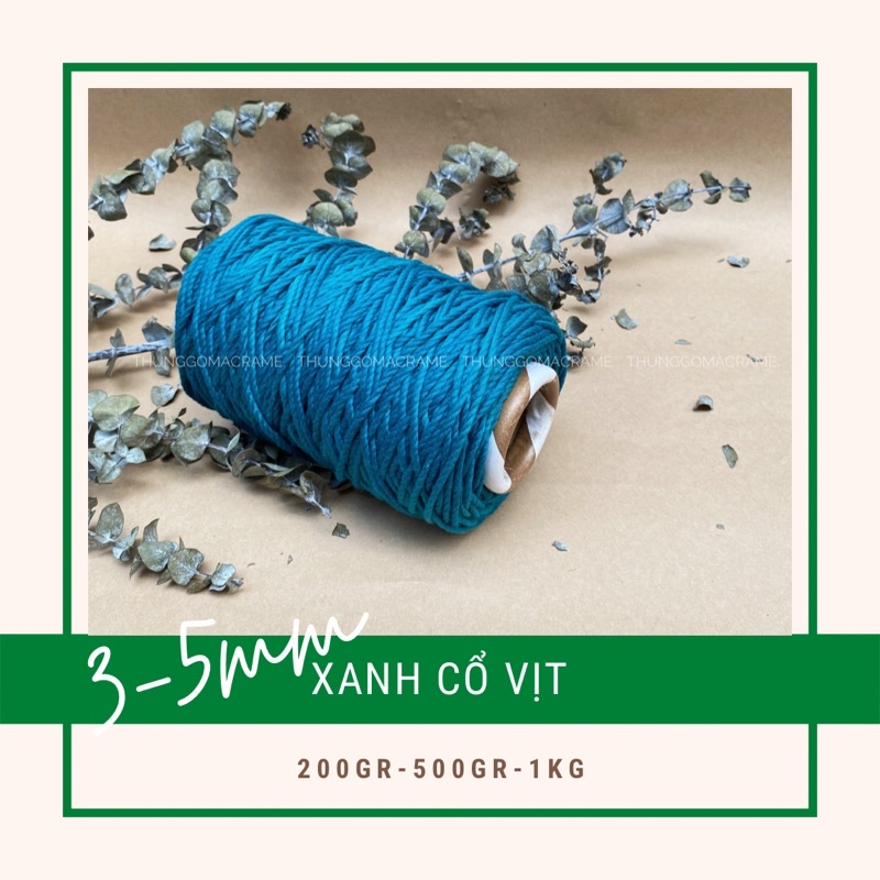 Dây thừng xoắn màu xanh cổ vịtSize 3mm và 5mm