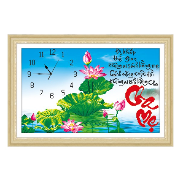 Tranh thêu đồng hồ Cha Mẹ Hoa Sen 3D Ailuo AL56716