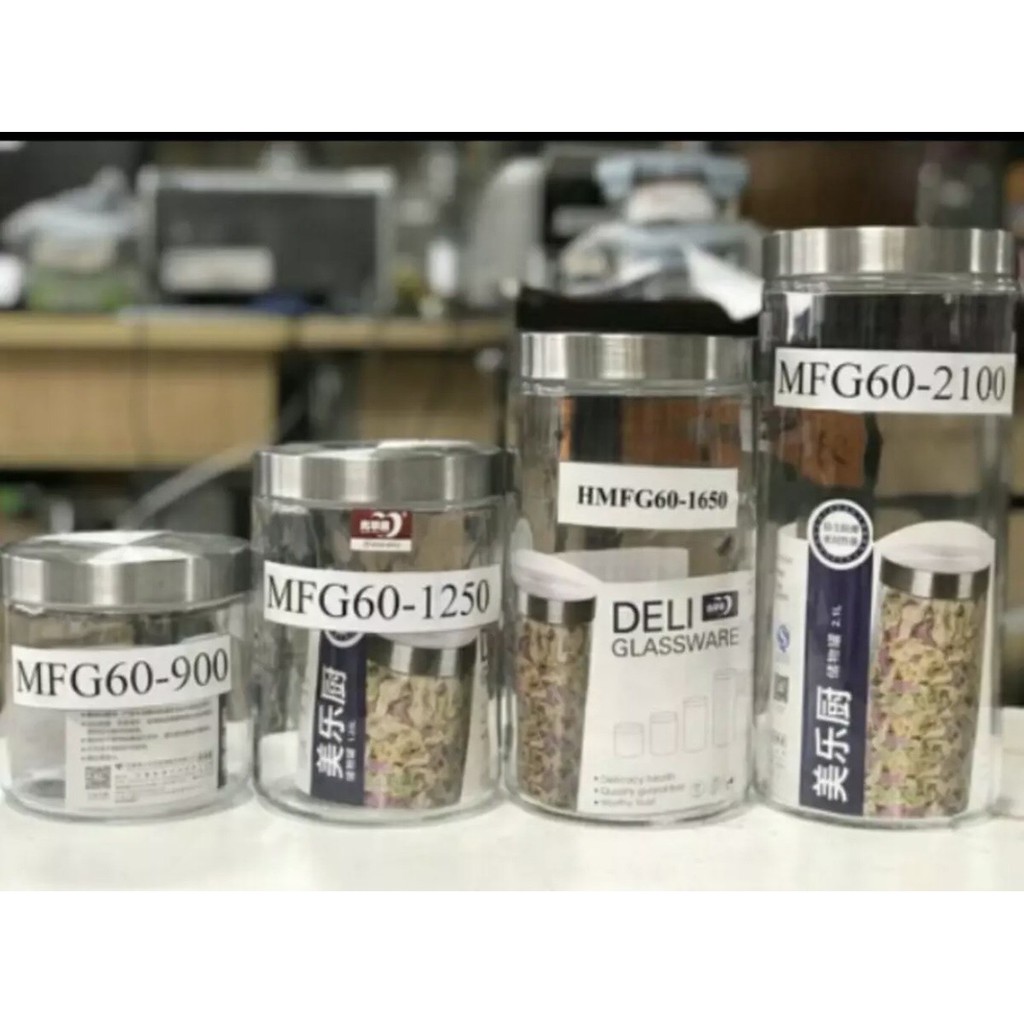Nhà cửa & Đời sống > Bộ đồ bàn ăn > Bình nước & phụ kiện || Lọ thuỷ tinh nắp thiếc xoáy HMFG60 size 900ml -2100mlCòn hàng