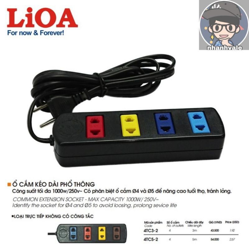 Giới thiệu [4TC3/4TC5] Ổ cắm điện LiOA 4 ổ cắm dây 3m và 5m