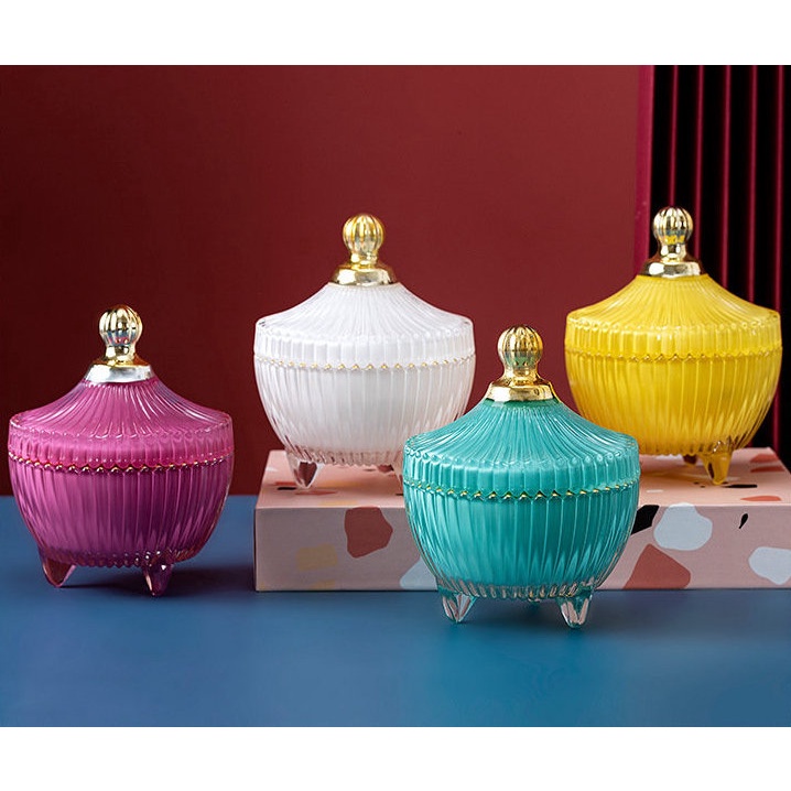 Giới thiệu Hũ Đựng Mứt, Bánh Kẹo Thuỷ Tinh Ngày Tết, Vân Sọc Nhiều Màu Sắc Đa Dạng Tinh Tế