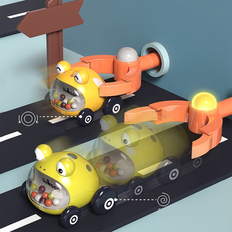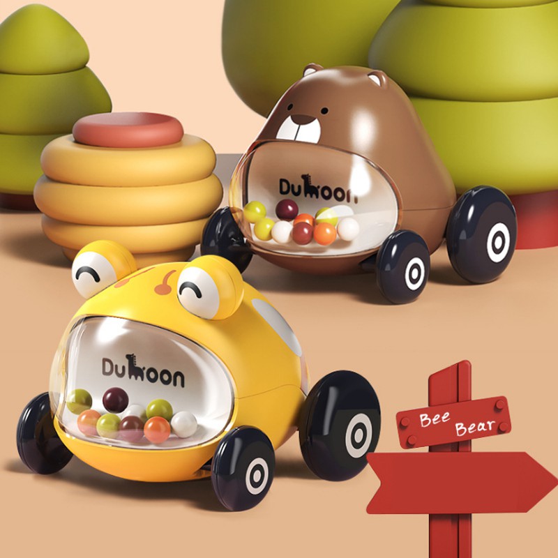 - Ở phía đầu xe có các hạt xúc xắc với nhiều màu sắc tươi sáng, khi bé lắc xúc xắc kêu vừa đủ, nghe rất vui tai.