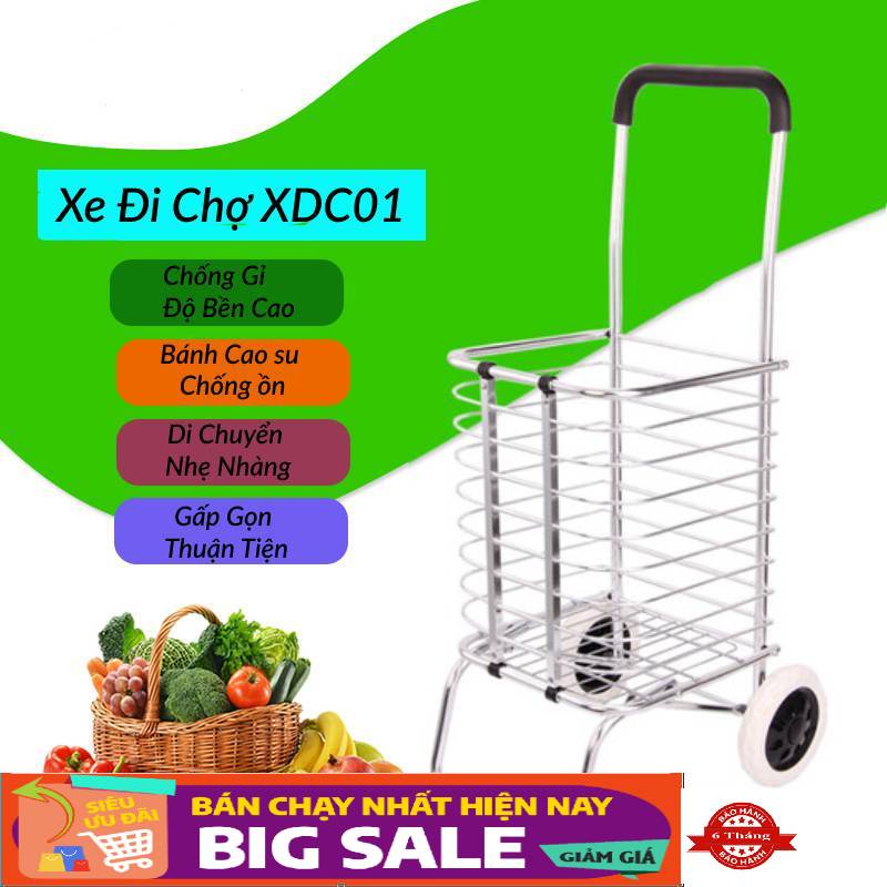 Giới thiệu [Mã LIFEHL50K giảm 10% đơn 200K] Xe Kéo Đi Chợ, Đi Siêu Thị Có Giỏ Hàng - XDC01