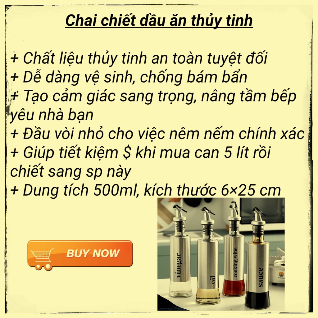 Nhà cửa & Đời sống > Dụng cụ nhà bếp > Khác || [Mã LIFE1703ALL giảm 10% đơn 50K] ⚡TẶNG PHỄU INOX⚡Chai Thủy Tinh Đựng Dầu Ăn Chiết Rót Dầu 500mlCòn hàng
