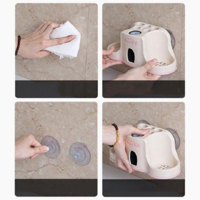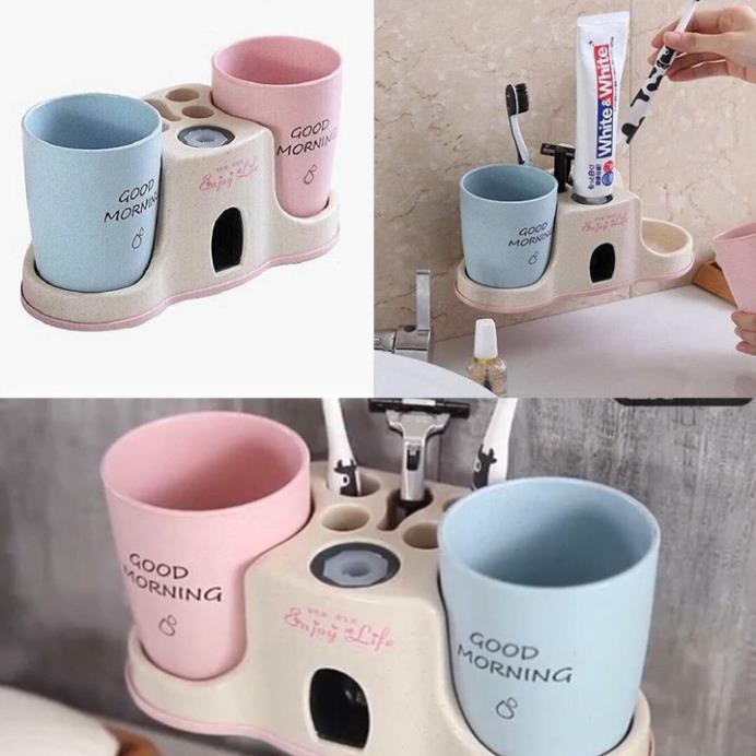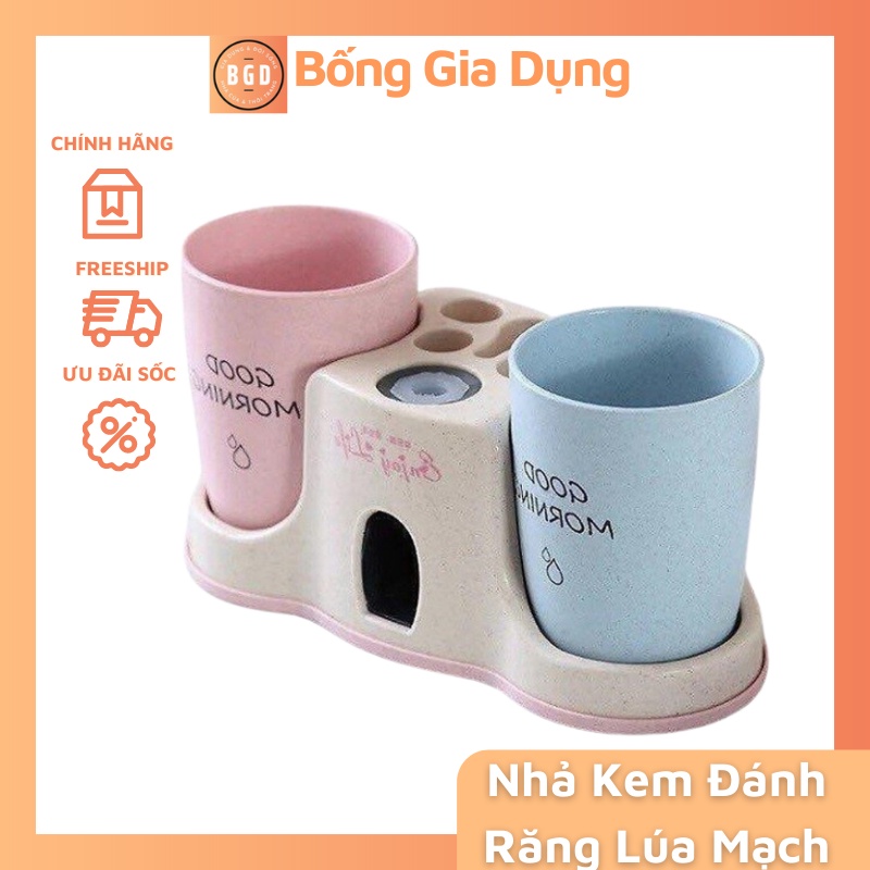 [Mã LIFE2804ALL giảm 10% đơn 50K] Kệ Nhả Kem Đánh Răng Tự Động 2 Cốc Lúa Mạch Có Chỗ Cắm Bàn Chải