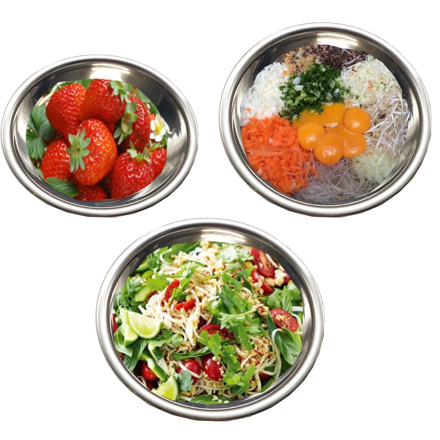 Chậu sâu inox siêu dày đa năng đủ size 18-20-22- 24-26-30-32-34-36cm-Sản phẩm được Làm từ inox 304 dày, bền và rất sang trọng.
