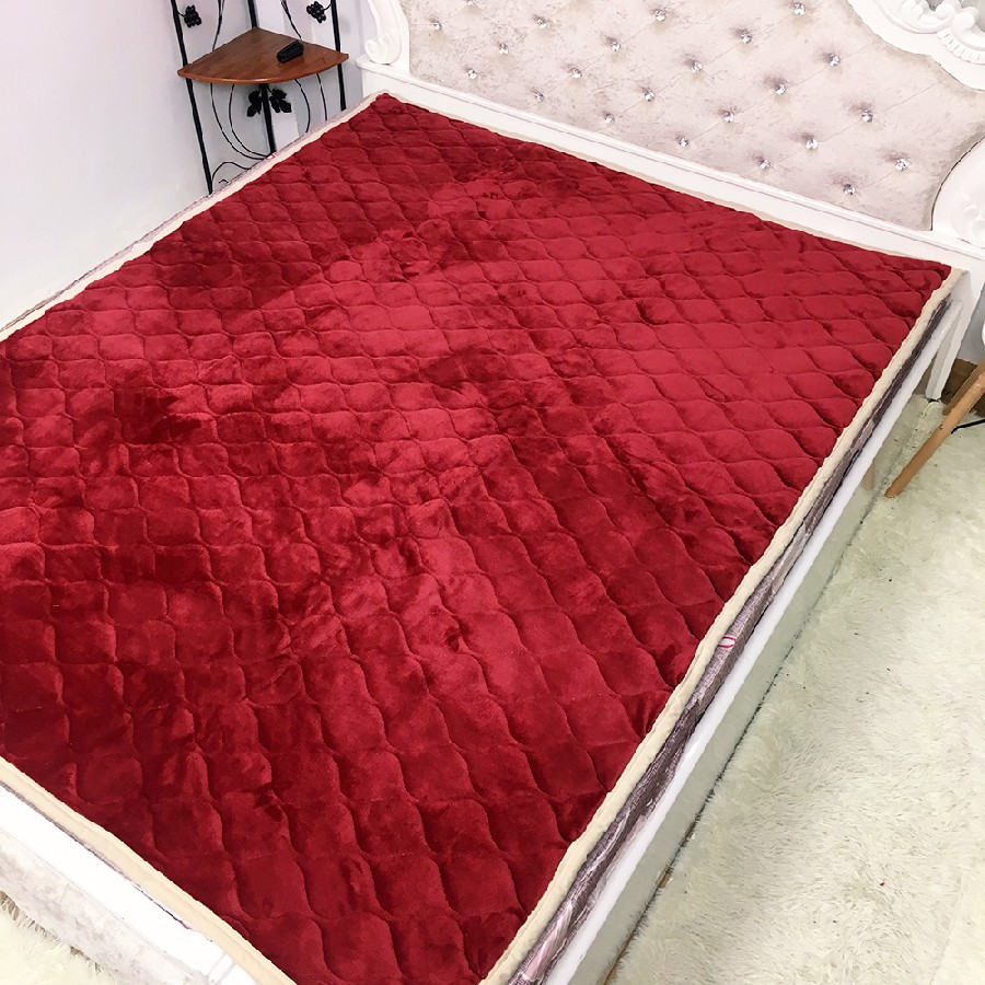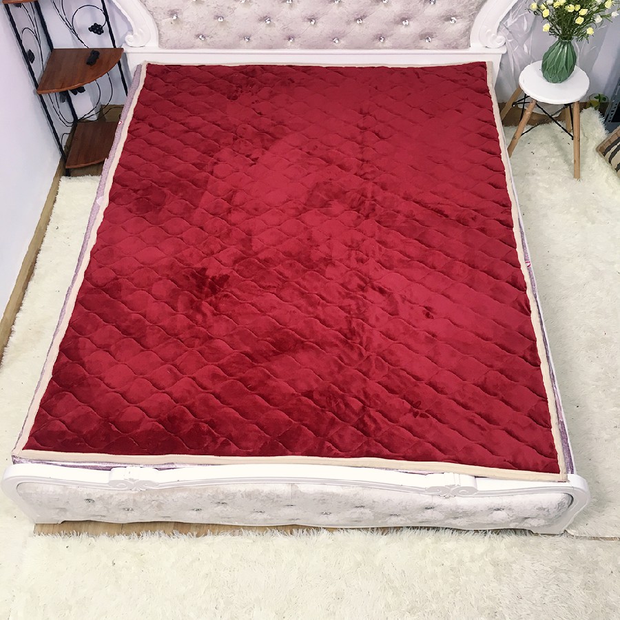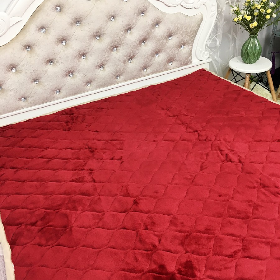 Thảm Nỉ, Thảm Cừu Đa Năng Trải Giường 3 Lớp Siêu Dày, Siêu Ấm mẫu TRƠN MÀU ĐỎ ĐÔ