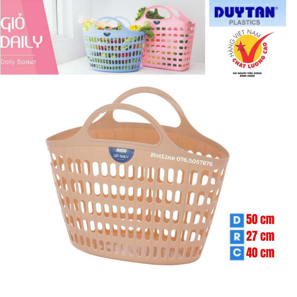 - Combo 10 Giỏ Xách Oval Daily Duy Tân (49.6 x 27.1 x 39.6 cm) No.0958 có 5 màu: Xanh Dương, Hồng, Trắng, Kem, Vàng, được làm bằng nhựa PE cao cấp, có độ bóng mờ cao và màu sắc nhẹ nhàng thời trang. Chất liệu nhựa có độ dẻo cao, chắc chắn, chịu được trọng lực lớn khó gãy hỏng.