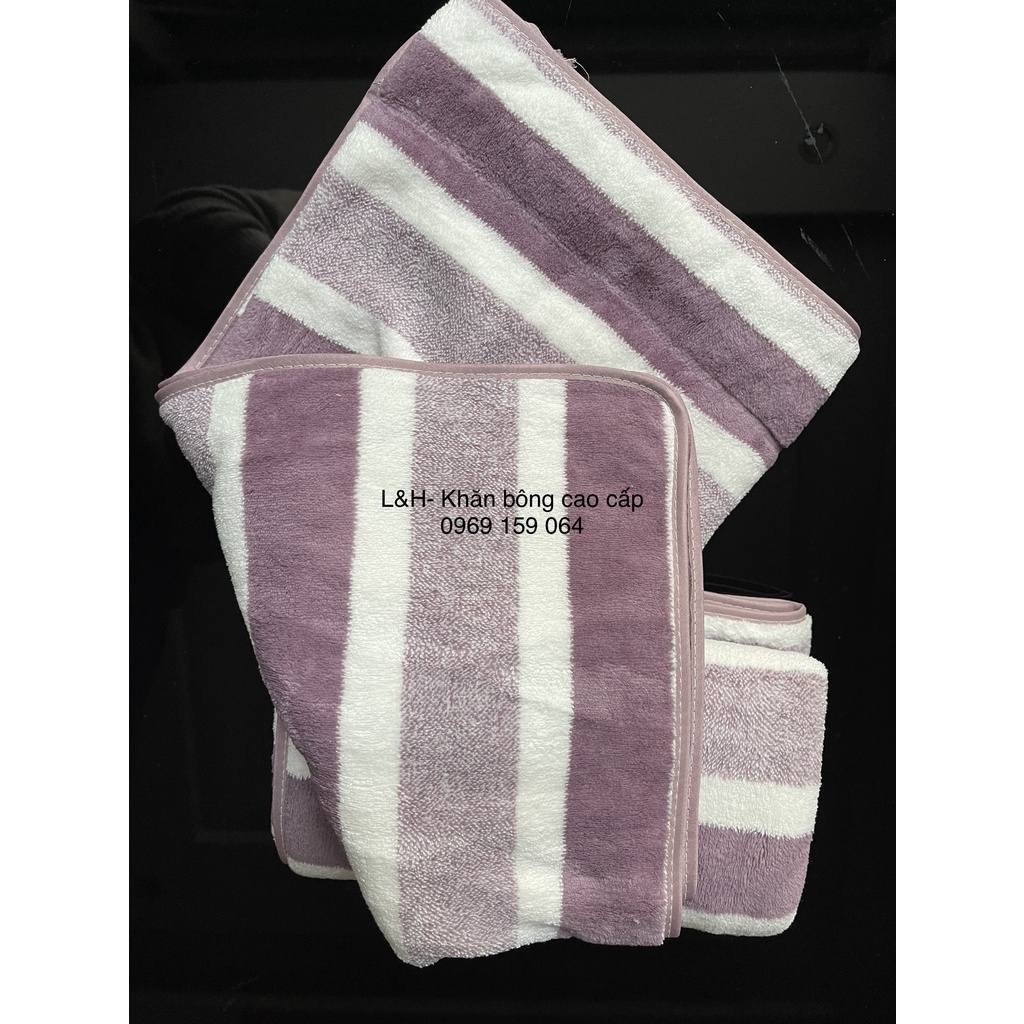 Khăn tắm lông cừu xuất hàn cao cấp, kẻ mờ, KT 70x140cm