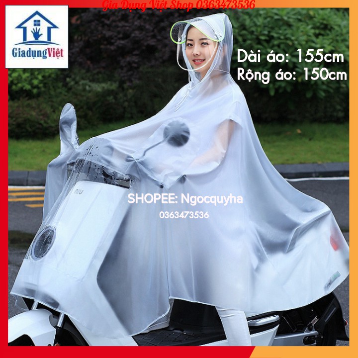 ÁO 2 MŨ Dài áo tà trước 155cm - Dài tà sau 160 cm - Rộng áo 150 cm - Có Kính chắn mưa gió ở mũ - Có bao gương. Shop đo thủ công nên có 1 số chênh lệch không đáng kể)