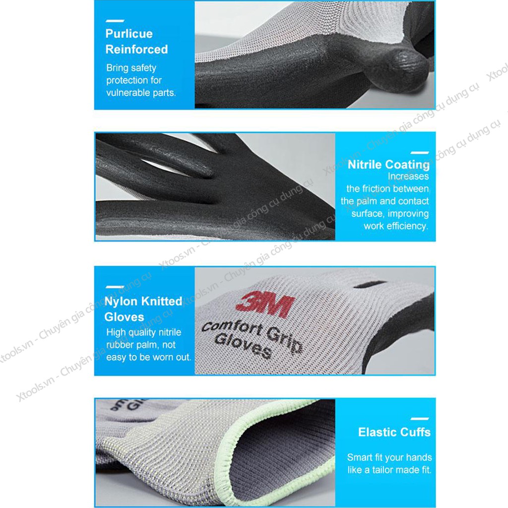 Găng tay đa dụng 3M có lớp Nitrile cấu tạo được thiết kế có độ dày phù hợp phủ trên bề mặt sợi bông Hàn Quốc nhằm khắc phục tình trạng bị độn, chảy mồ hôi tay, dị ứng ngứa thường gặp khi mang găng tay. Do đó, mang găng tay khi làm việc để tay thoải mái, tự tin, chính xác và khéo léo kể cả khi có tiếp xúc với các vật dễ bén, hóa chất nhẹ, dầu nhớt.