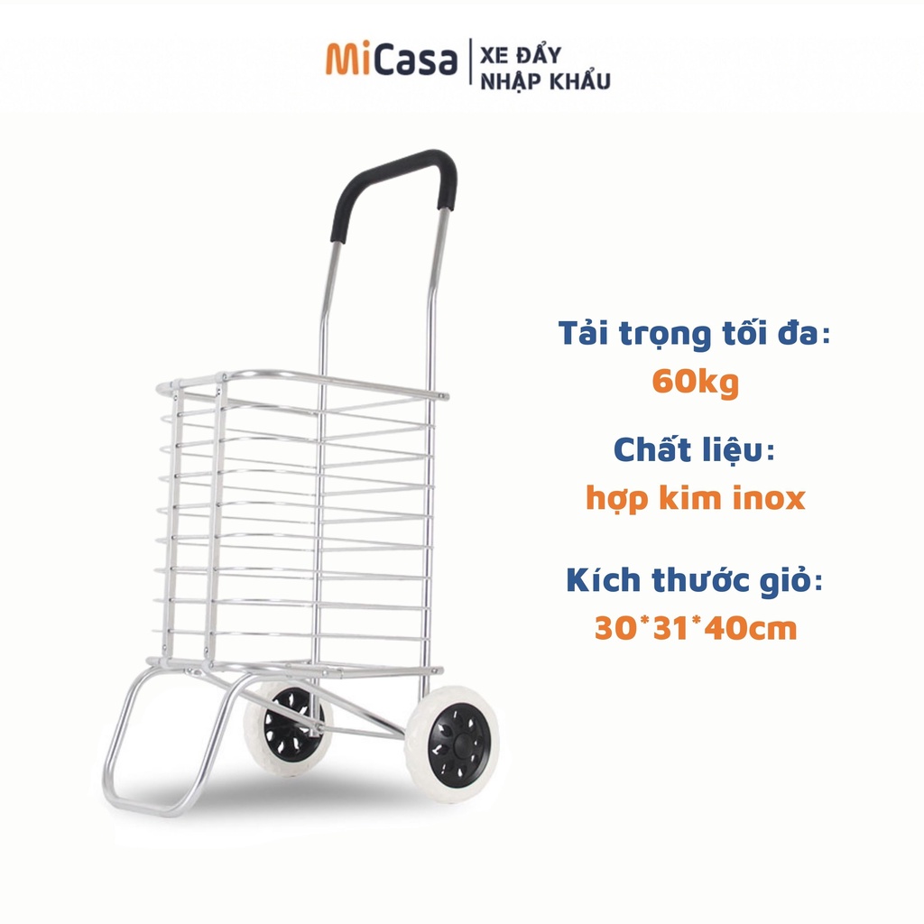Giới thiệu [Mã LIFEHL50K giảm 10% đơn 200K] Xe Kéo Đi Siêu Thị, Xe Đi Chợ Gấp Gọn Có Giỏ Hàng Siêu Đẹp - DC12-WH