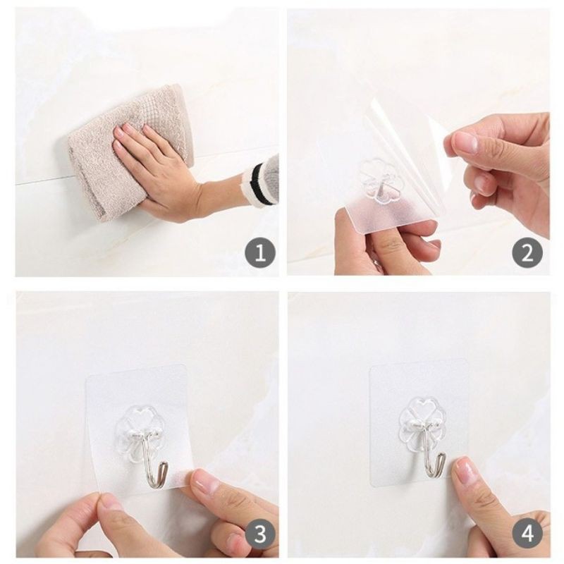 Giới thiệu [Bán lẻ 1 cái] Móc dán tường chịu lực trong suốt 6x6 (cm)