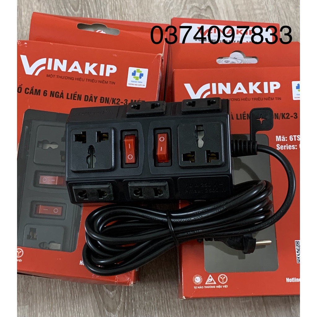 Giới thiệu [Mã LIFE20KALL giảm 10% đơn 50K] Ổ Cắm Điện 6 Ngả Đa Năng Dây 3m 5m 2 chạc và 3 chạc Kiểu 2 10A/250V OC56 OC57 Vinakip