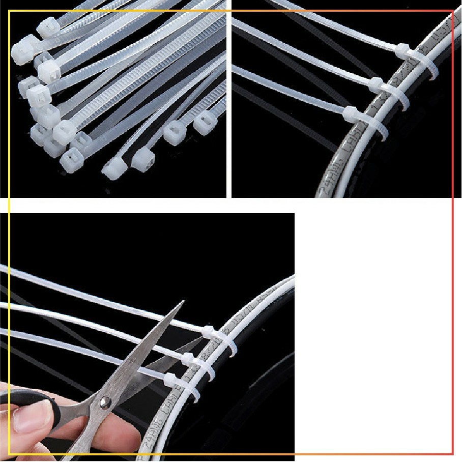 - Có thể tái sử dụng - chỉ cần đẩy phần khóa xuống bằng móng tay hoặc tuốc nơ vít để tháo dây buộc zip