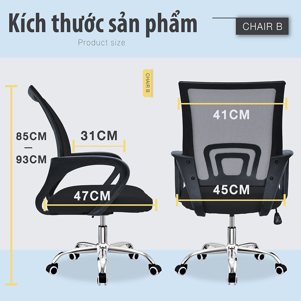 Nhà cửa & Đời sống > Nội thất > Ghế, ghế dài, ghế đẩu || [Mã LIFE2804ALL giảm 10% đơn 50K] (CÓ SẴN )CHAIR19GHẾ LƯỚI VĂN PHÒNG Mẫu B01, GHẾ CHÂN XOAY LÀM VIỆC GIÁ RẺCòn hàng