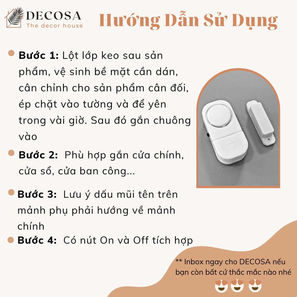 THÔNG TIN SẢN PHẨMChuông cảm biến thông minh cảnh báo cửa mở chống trộm DECOSA