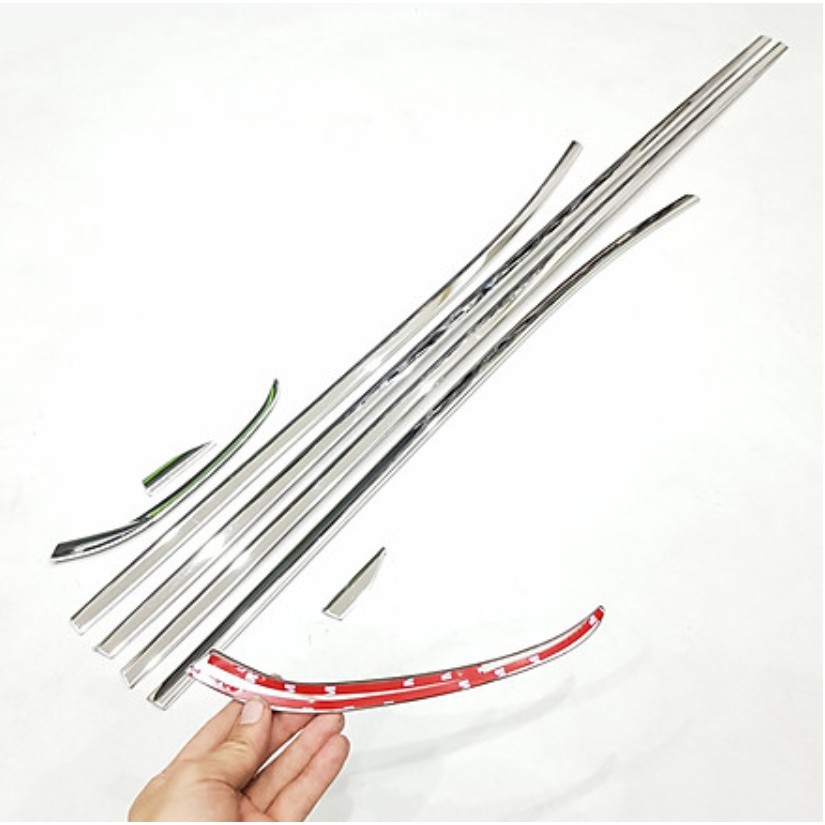 - Nẹp inox chân kính Vinfast Fadil- Bộ sản phẩm gồm 8 miếng, có sẵn băng dính 2 mặt, lắp đặt dễ dàng.