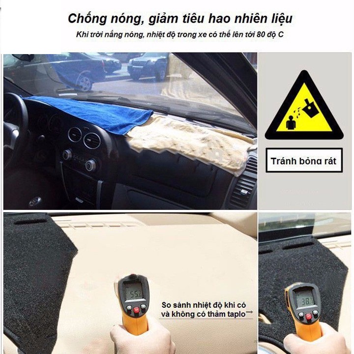 1. Thảm taplo da chống nắng nóng loại bỏ hoàn toàn ánh sáng phản quang từ mặt taplo lên kính lái, làm trong kính lái, giúp lái xe an toàn nhất là trong điều kiện thời tiết nắng nóng.
