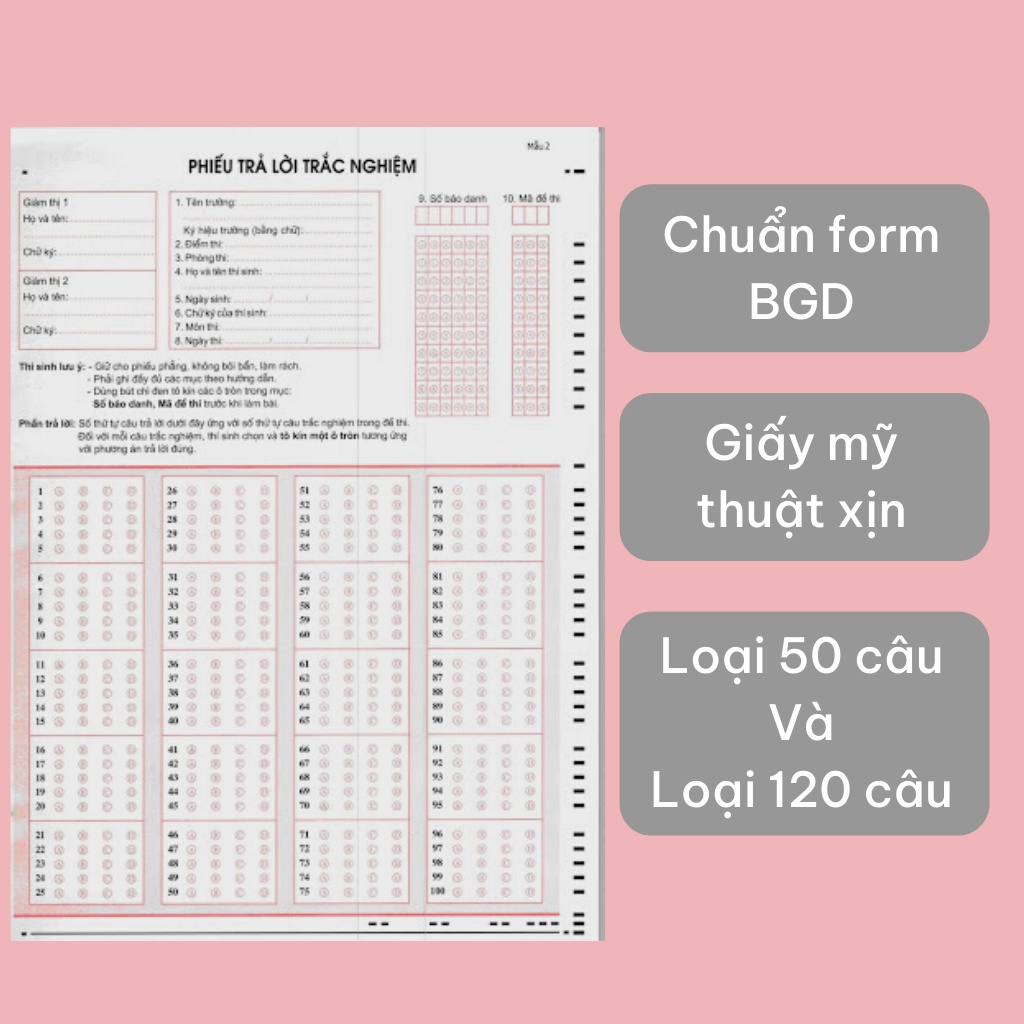 Giấy trắc nghiệm chuẩn cấu trúc thi THPT Quốc gia 2022- Chuẩn form phiếu trắc nghiệm của kỳ thi TN THPTQG.