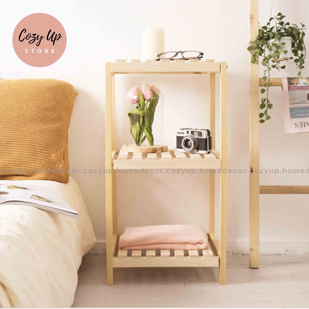 Giới thiệu [Mã LIFEBK1611 giảm 10% đơn 300K] KỆ VUÔNG 3 TẦNG ĐẦU GIƯỜNG GỖ THÔNG TRANG TRÍ