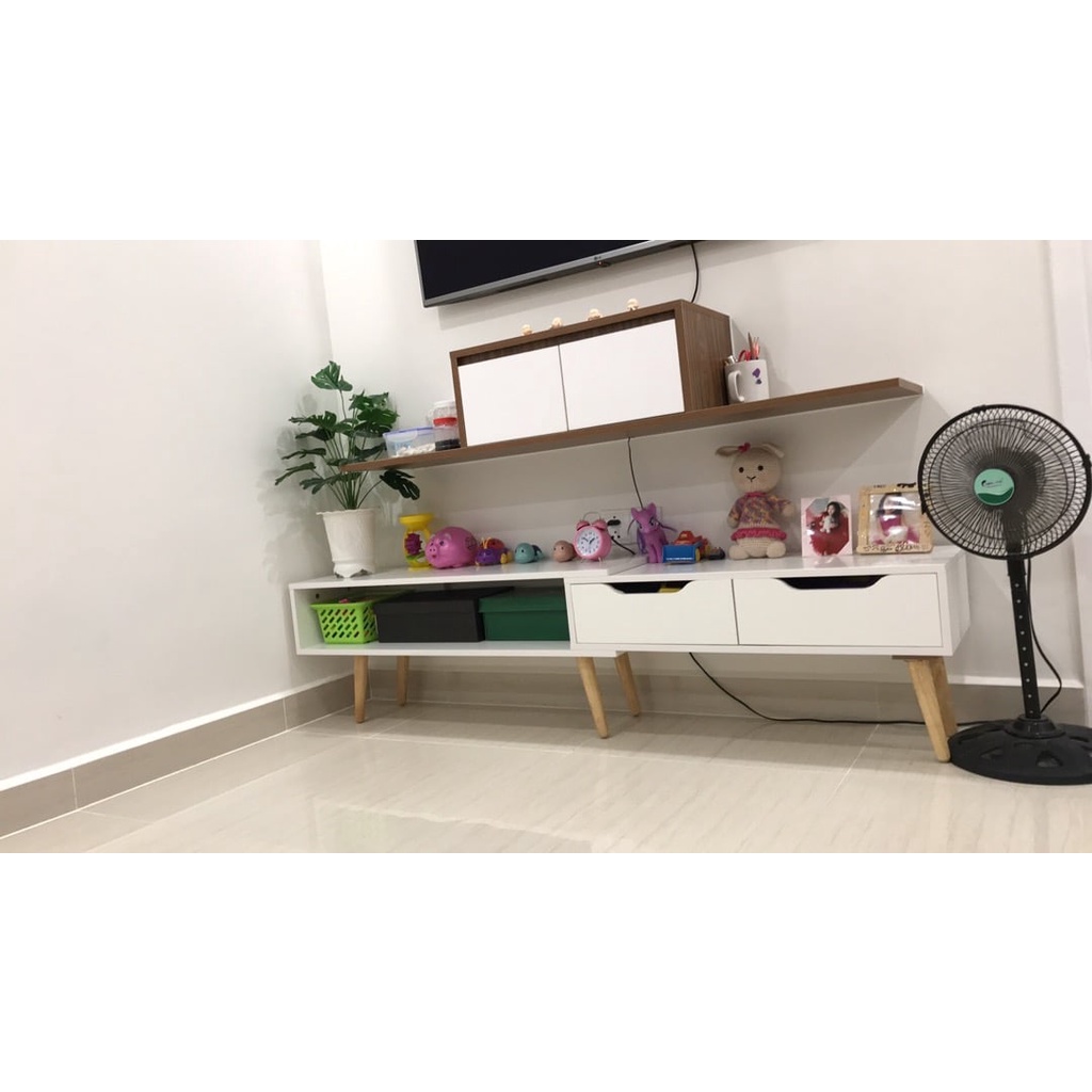 - Đa công năng: Để đầu thu, Wifi, loa, thiết bị điện tử, đồ trang trí thỏa mái. Lắp được cả phòng khách và phòng ngủ.