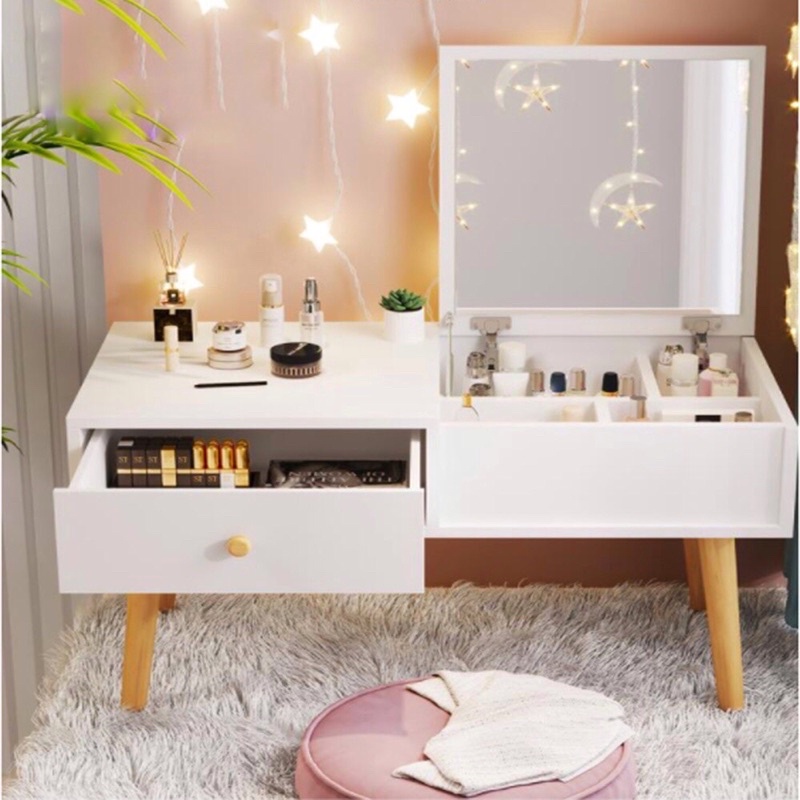 - Bàn phấn trắng tinh khôi, toát lên vẻ thanh lịch, nhẹ nhàng quyến rũ