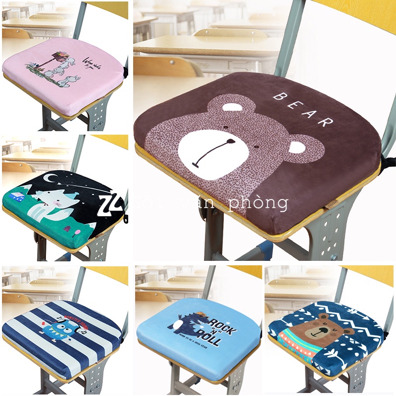 ❤️Gối lót ghế (đệm ngồi) cao su non với kiểu dáng thiết kế chuyên dùng cho các loại ghế học sinh, ghế bàn học trẻ em siêu êm, nhiều hình dễ thương, có dây buộc và hạt chống trượt chắc chắn.💢 Kích thước gối phù hợp với các loại ghế ngồi bàn học sinh