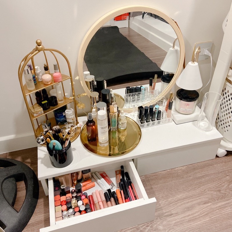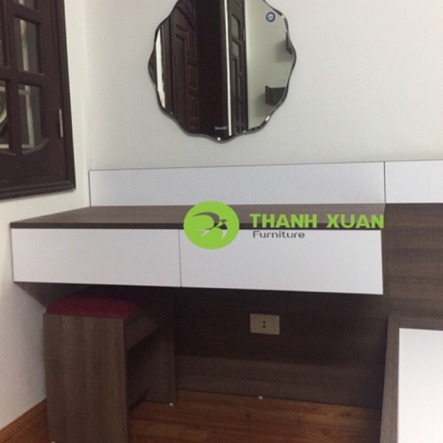 Ngày nay với sự phát triển của nhu cầu làm đẹp, các chị không thể không sắm cho mình những thỏi son, những sản phẩm dưỡng da, những sản phẩm và dụng cụ trang điểm,... Chính vì vậy những chiếc bàn trang điểm là một món đồ nội thất không thể thiếu dành cho các chị em và cả những anh chàng thích chăm sóc bản thân nữa nhé.Bàn trang điểm được thiết kế đơn giản và có 2 ngăn kéo.