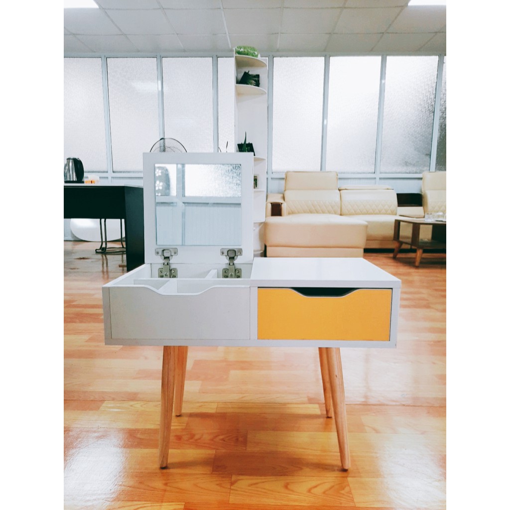 - Công năng: Là chiếc bàn trang điểm cực chill cho các quý cô thường xuyên trang điểm. Đặc biệt phù hợp với phòng có diện tích khiêm tốn.