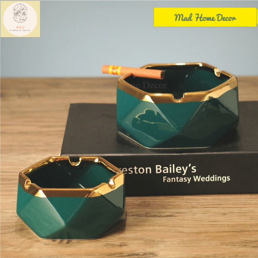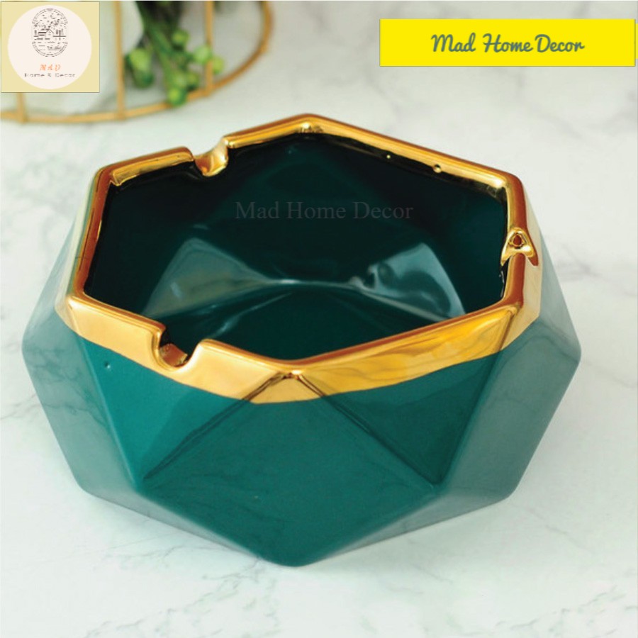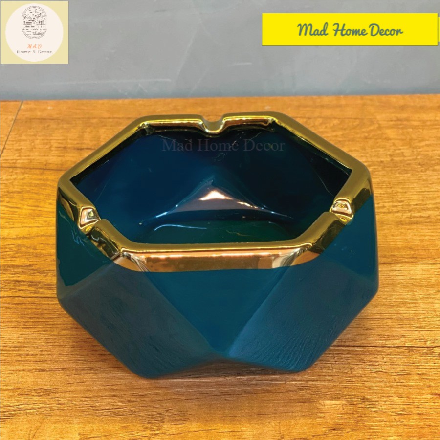Gạt tàn gốm sứ xanh cổ vịt viền vàng hình đa giác độc đáo, sang trọng+ Thiết kê tinh xảo, sang trọng, hoa văn hình hươu ánh vàng cực kỳ đẹp mắt