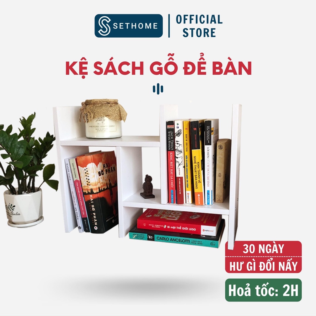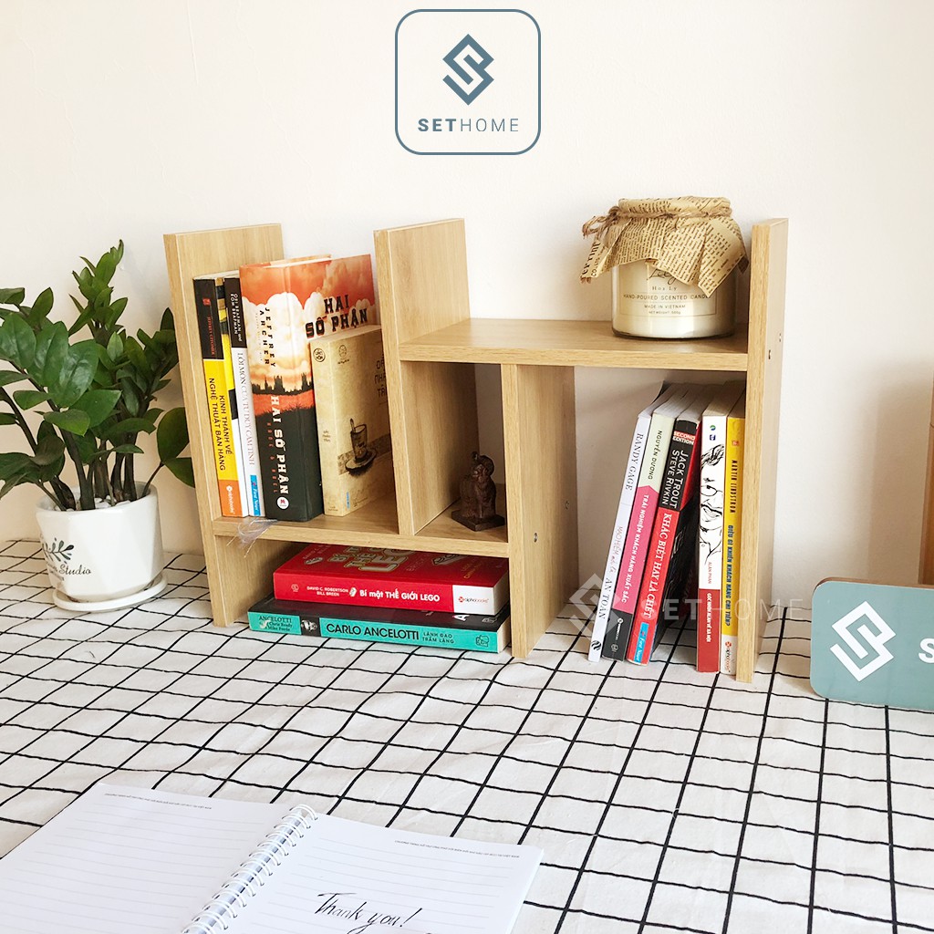 [Mã LIFEBKA5 giảm 10% tối đa 1 Triệu đơn 500k] Kệ sách gỗ - Kệ sách để bàn làm việc lắp ghép đa năng - SetHome Official