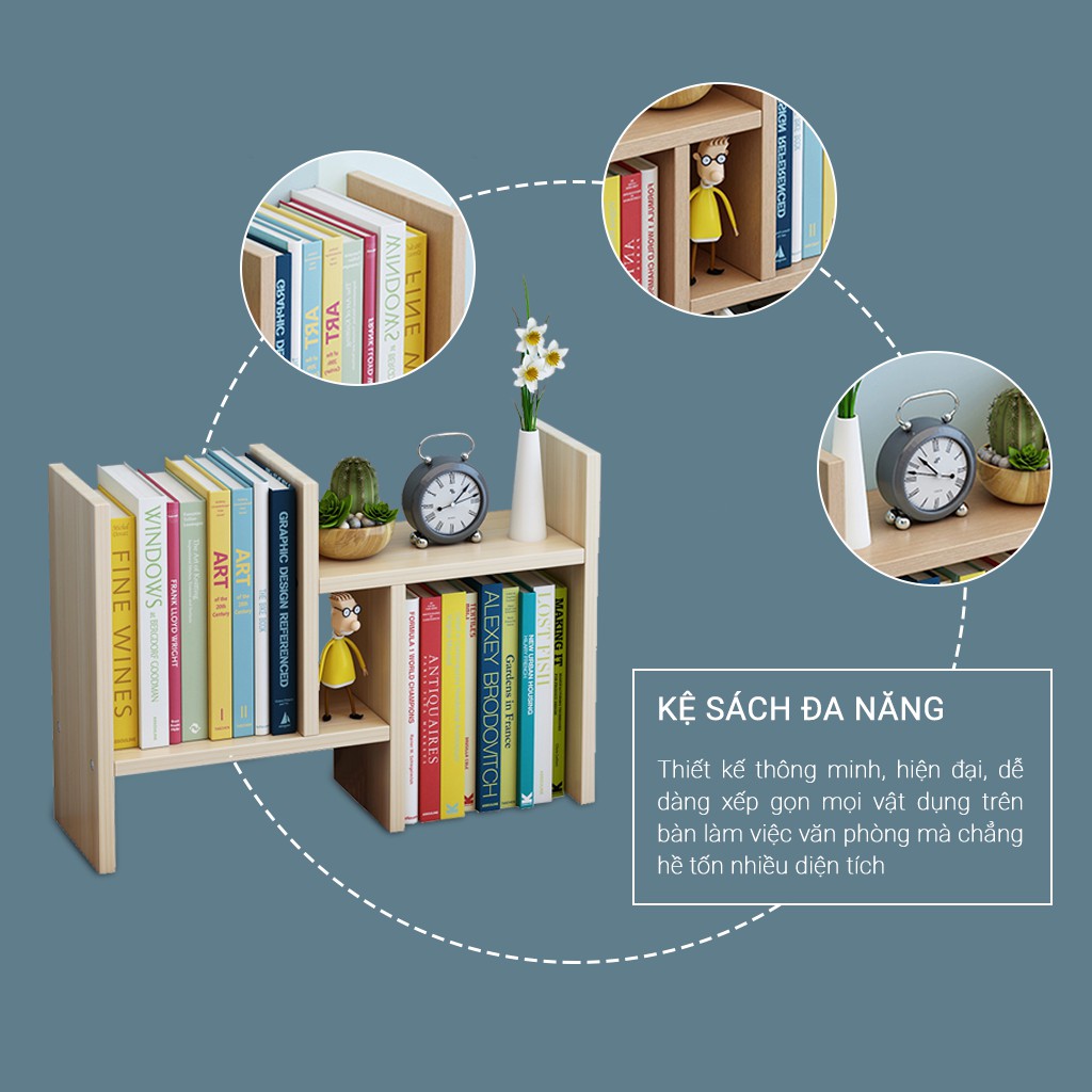Kệ sách gỗ - Kệ sách để bàn làm việc lắp ghép đa năng - SetHome Official1. MÔ TẢ SẢN PHẨM:
