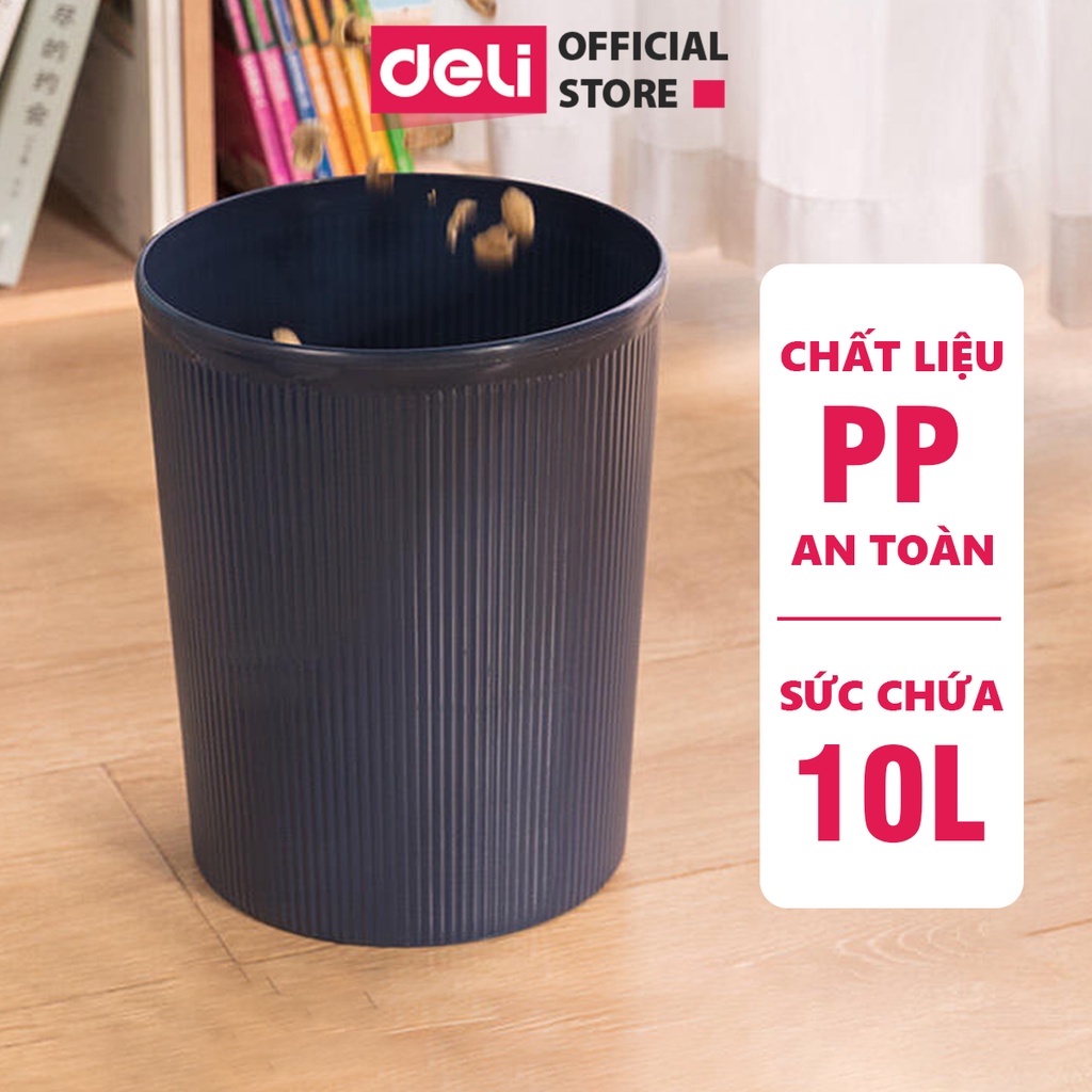 Thùng rác nhựa tròn Deli - Dung tích 10l - Nhựa pp dễ vệ sinh, không bám bẩn - 9581