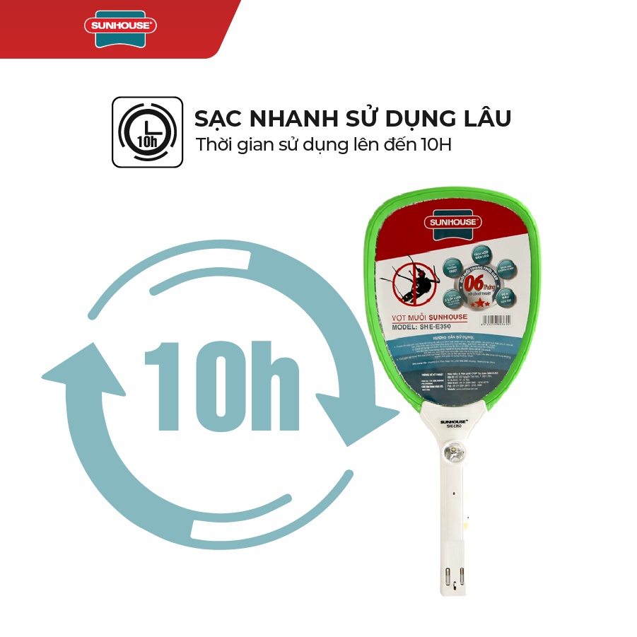 Vợt muỗi SUNHOUSE SHE-E350 là sản phẩm không thể thiếu giúp bạn tiêu diệt muỗi và côn trùng để bảo vệ sức khỏe gia đình, phòng tránh dịch sốt xuất huyết hiệu quả.