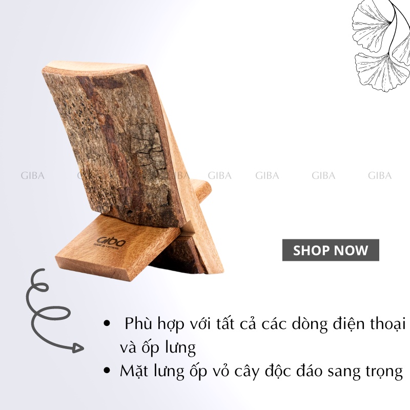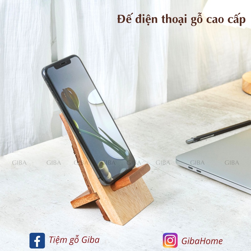 Đế điện thoại, giá đỡ máy tính bảng lưng vỏ gỗ cao cấp, độc đáo làm từ gỗ tự nhiên