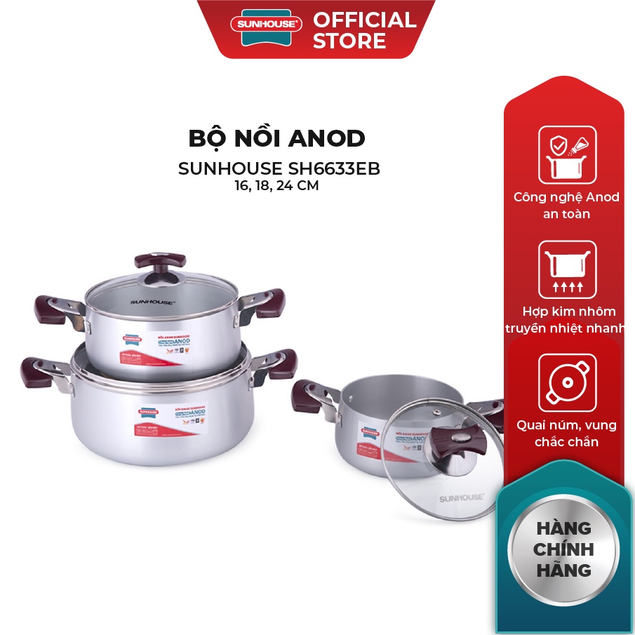Giới thiệu [Mã LIFEHL25 giảm 10% đơn350K] Bộ nồi anod Sunhouse SH6633 quai EB (16,18,24)