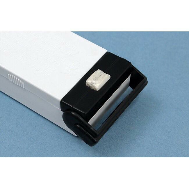 👉 Đặt một phần miệng túi nylon vào giữa thân máy. Một tay giữ chặt túi, tay còn lại giữ dụng cụ. Kéo nhẹ dụng cụ để hàn miệng túi.
