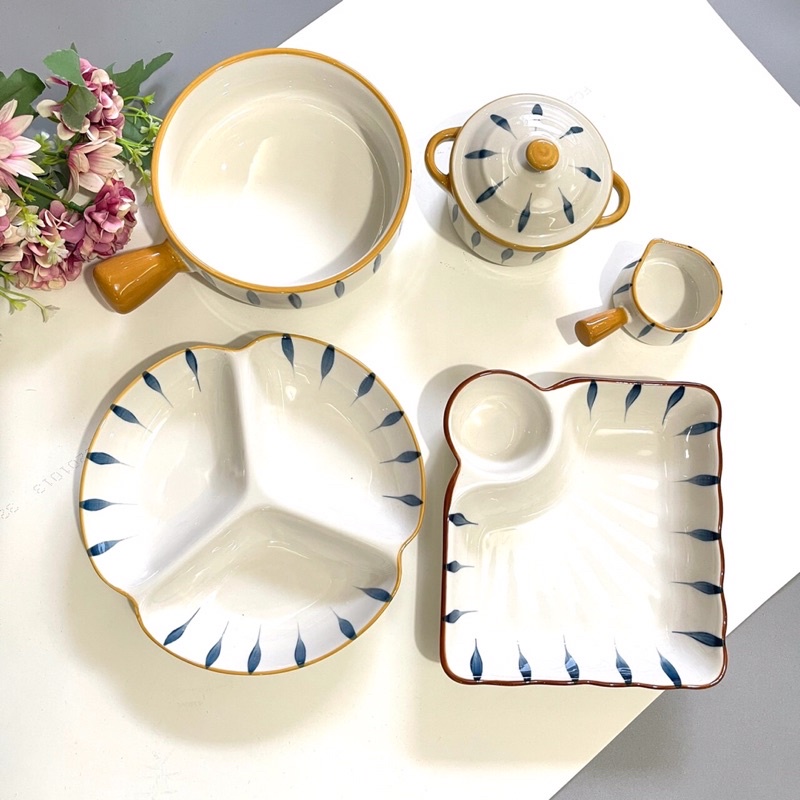 Nhà cửa & Đời sống > Bộ đồ bàn ăn > Dĩa || [Mã LIFEHLM2 giảm 10% tối đa 15k đơn 0đ] Sét bát đĩa kẻ 5 món siêu đẹpCòn hàng