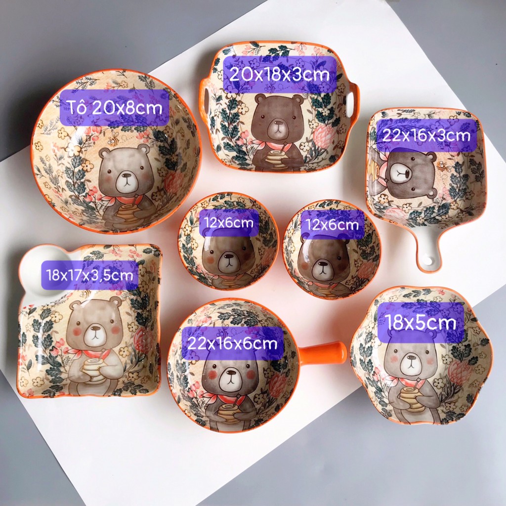 Bộ bát đĩa gốm sứ mẫu gấu nâu 8 món kute