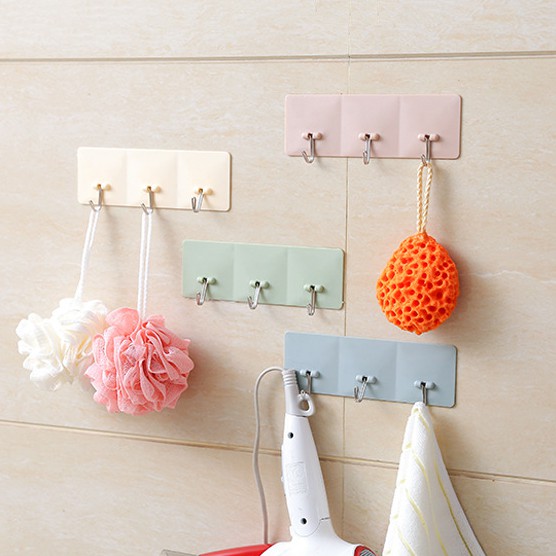 Nhà cửa & Đời sống > Sắp xếp nhà cửa > Móc treo || HCM - Thanh 3 móc dán tường treo đồ kiểu Hàn QuốcCòn hàng