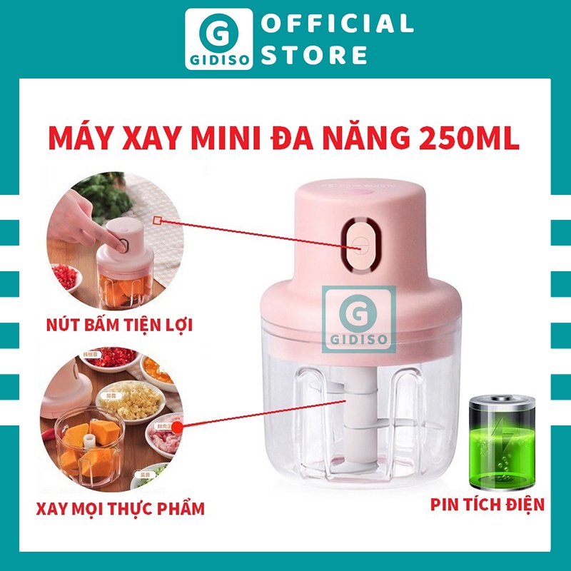 Máy Xay Mini Sạc Điện GIDISO Có Cổng Sạc Usb Xay Hành Tỏi Rau Củ Quả Đồ Ăn Dặm