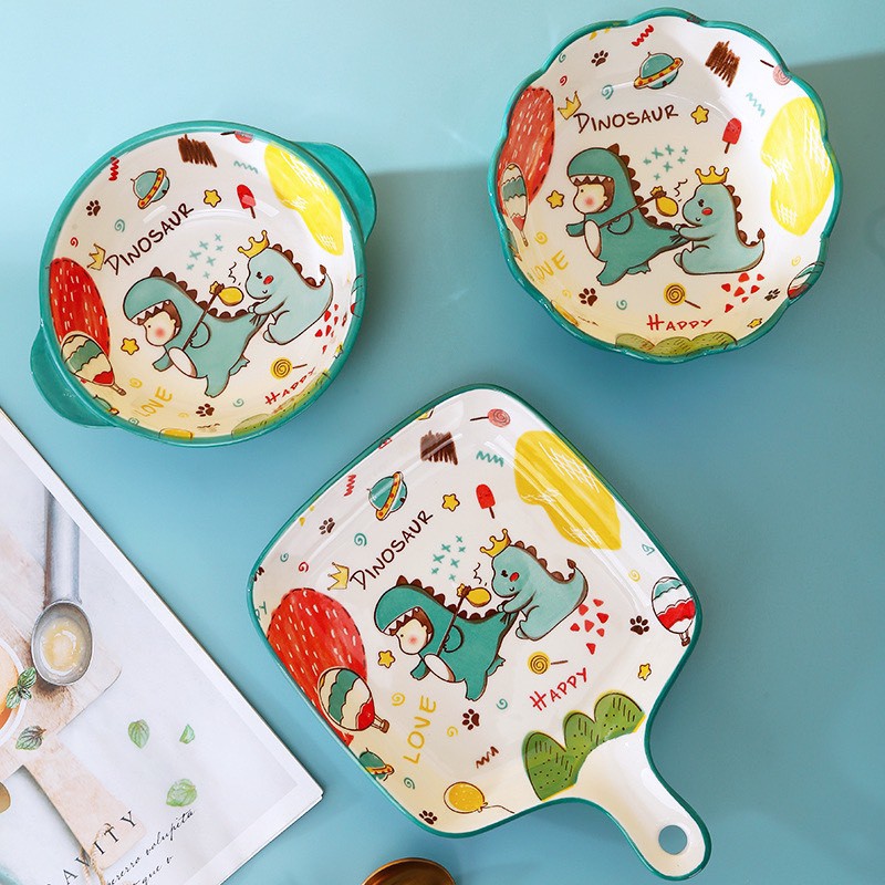 Nhà cửa & Đời sống > Bộ đồ bàn ăn > Tô || [Mã LIFEHLM2 giảm 10% tối đa 15k đơn 0đ] Bộ bát đĩa khủng long gốm sứ decor siêu đẹpCòn hàng
