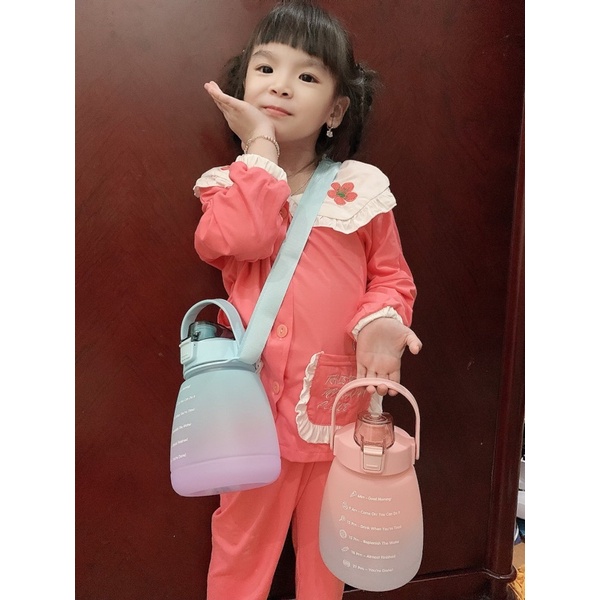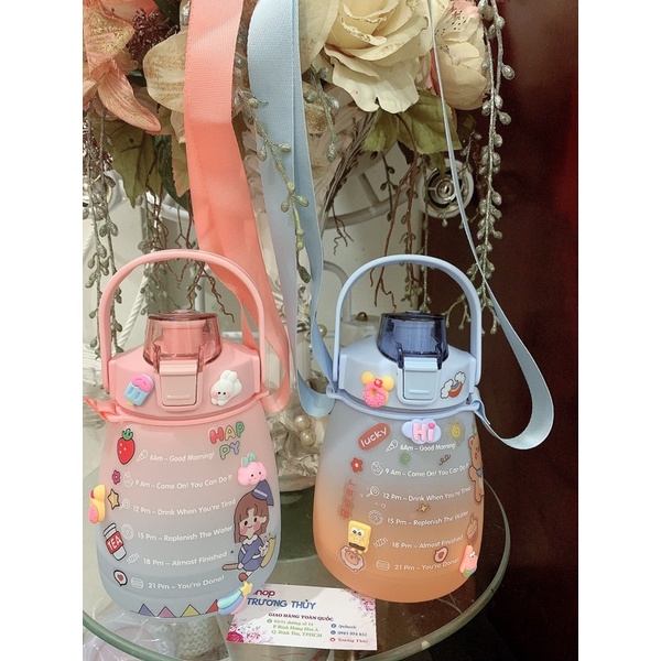 Giới thiệu Bình Đựng Nước Dễ Thương Có Vạch Báo Giờ Uống Nước 1200ml