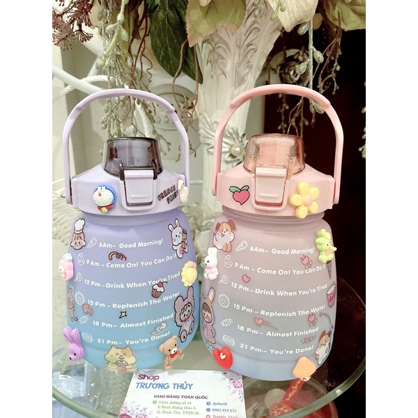 Bình Đựng Nước Dễ Thương Có Vạch Báo Giờ Uống Nước 1200ml*Ưu điểm: