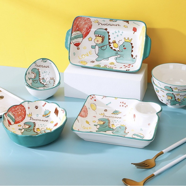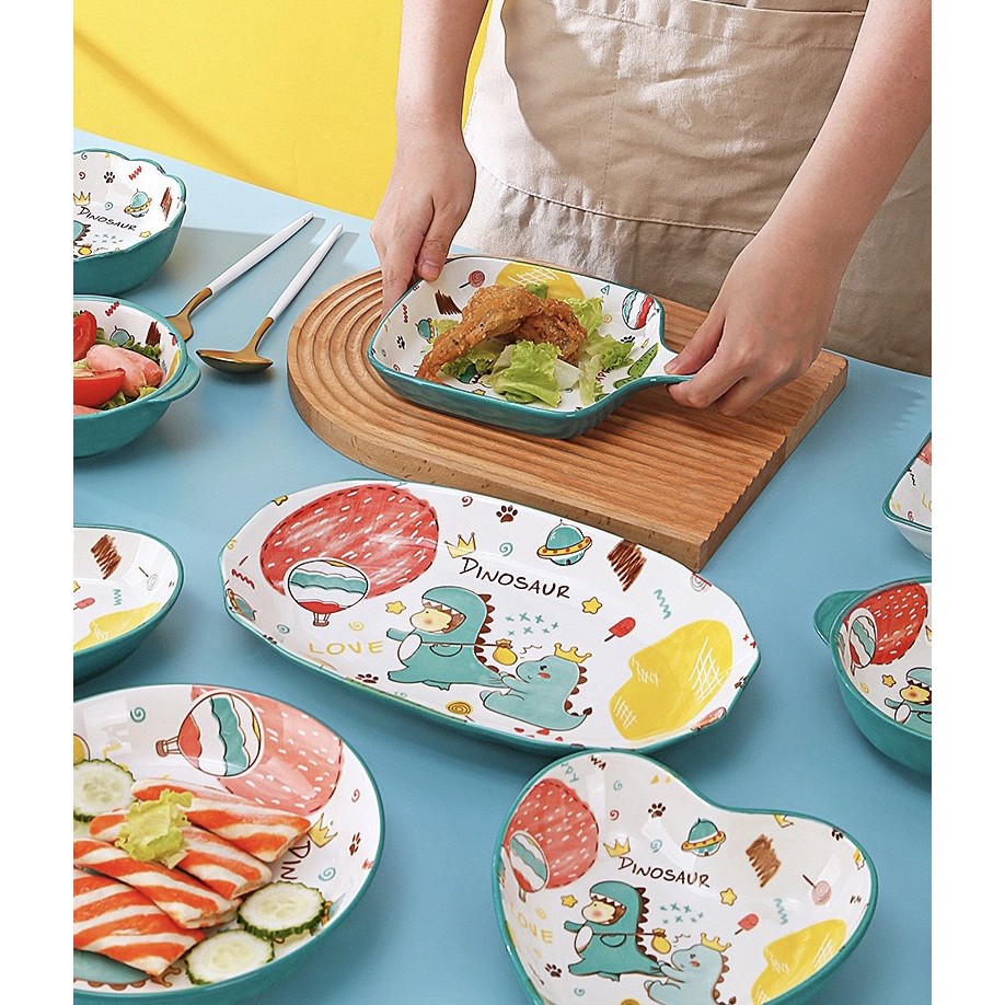 Nhà cửa & Đời sống > Bộ đồ bàn ăn > Tô || [Mã LIFEHLM2 giảm 10% tối đa 15k đơn 0đ] Bát đĩa decor bộ bát đĩa khủng long gốm sứ siêu đẹpCòn hàng