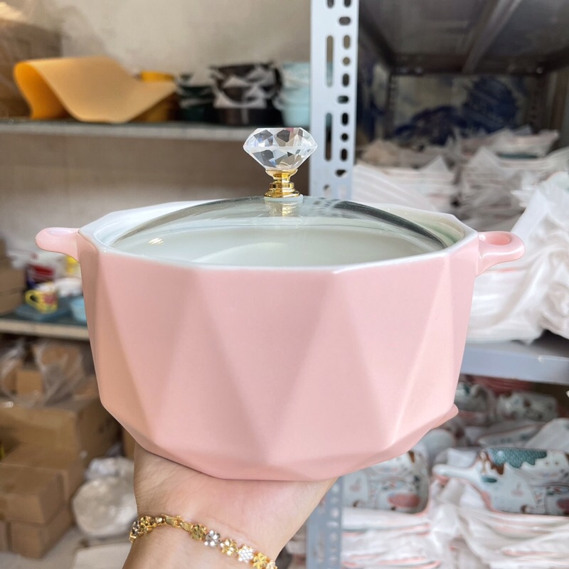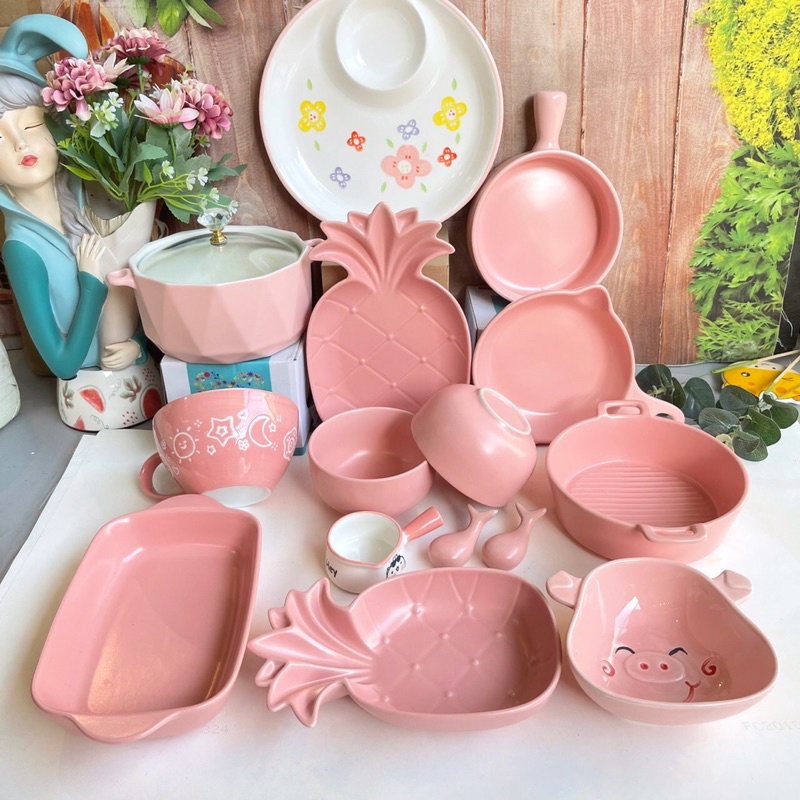 Bát đĩa gốm sứ decor bộ màu hồng siêu đẹp