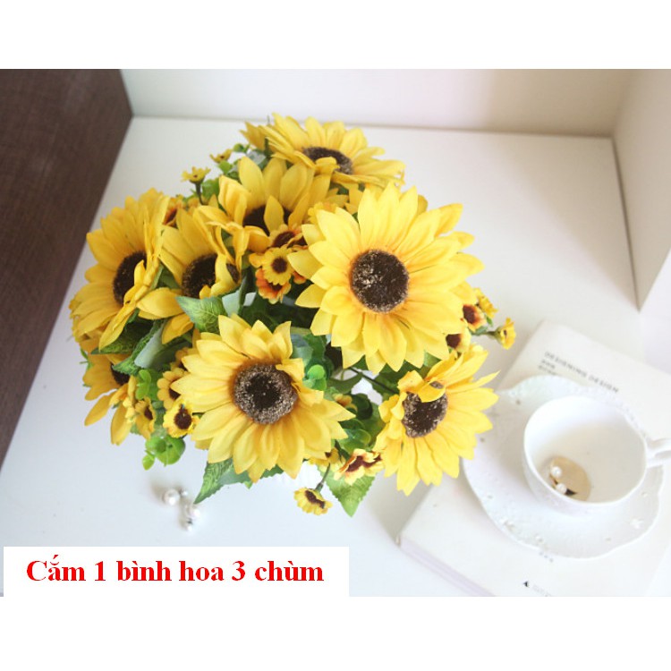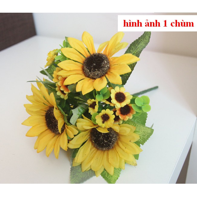 - Chùm hướng dương giả màu sắc sinh động tự nhiên, dễ phối hợp và tạo những kiểu cắm hoa đẹp và ấn tượng, hoặc có thể đơn lẻ cắm riêng một bình.- Giá bán 1 nhánh như hình mẫu.