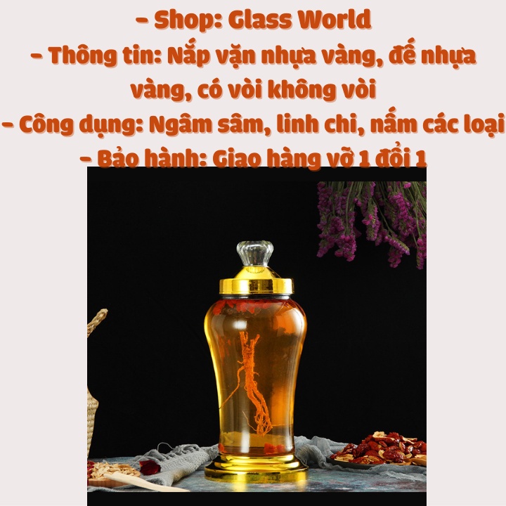 🐝Bình với nắp nhựa vàng, đế nhựa vàng bình dáng trụ thích hợp hợp ngâm sâm hoa quả các loại,...